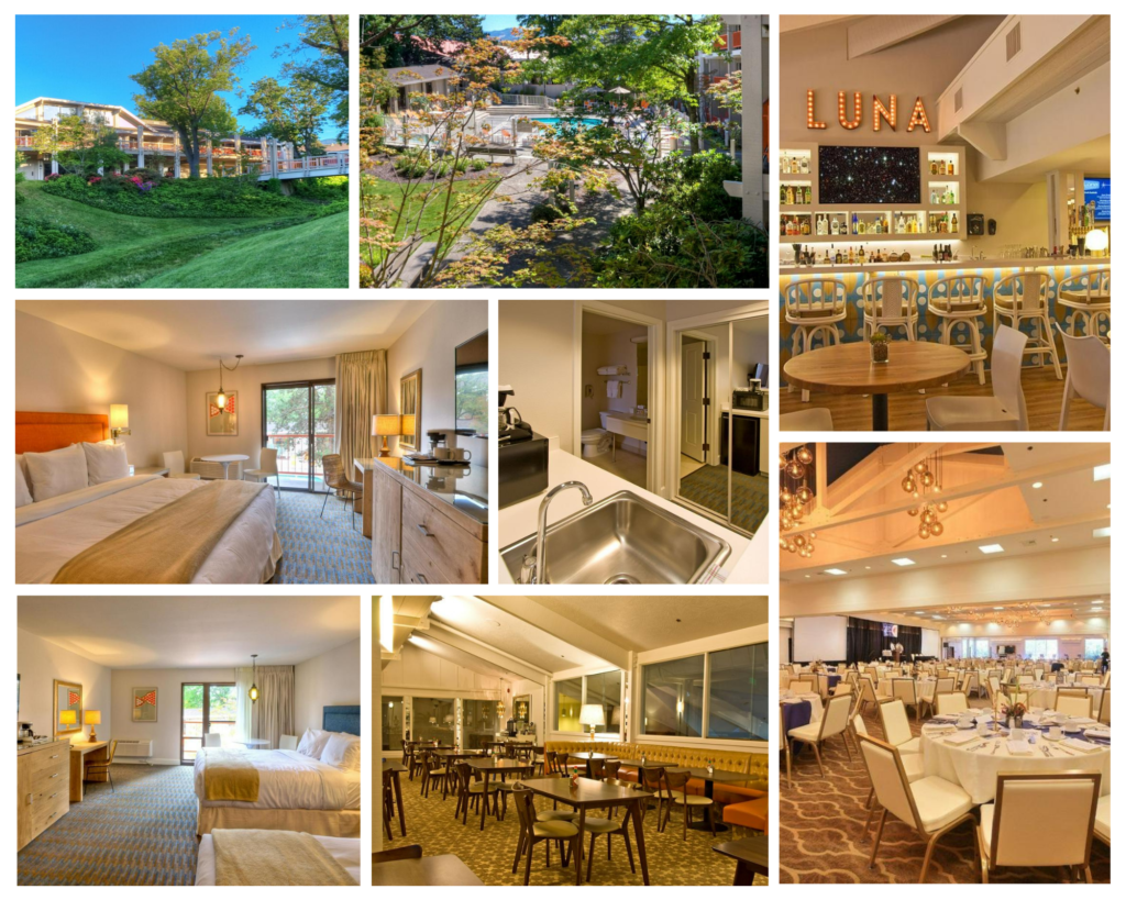 The Ashland Hills Hotel & Suites, which is the conference site, is the best lodging choice for rooms for discounted rooms at the conference site and ease in getting to the conference events on time. We have a limited reserved block at a discounted $139 (discounted from rates of $219 or more) so we please try to stay there if at all possible – it also helps IASD to meet our commitment and avoid our becoming responsible for unsold or cancelled rooms. Our block will have just about occupied the entire hotel so best to book early for availability and best room choice. With the stay at the hotel our guests, 24 hour fitness center, access to business center, hotel parking, EV car charging stations and Wi-Fi. Additional amenities include a seasonal outdoor pool and Jacuzzi, tennis & pickleball courts, cruiser bikes for day use, as well as an onsite restaurant Luna Café.