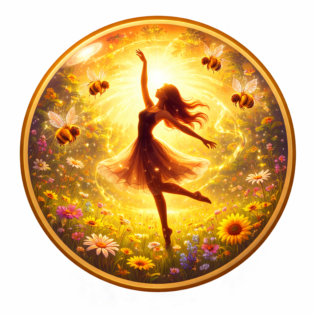 The opening sets the stage: lyrical dreaming/bee-anecdotes, sacred geometry-inspired movement/dance and toning/singing. Concluding with inviting the participants to breath/hum together (bee-breath: Bhramari Pranayama.)
