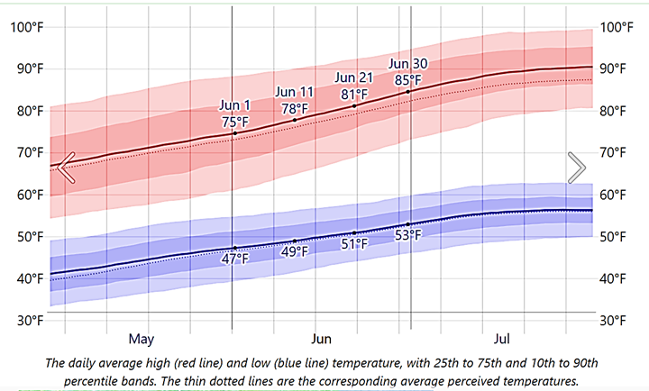- Expect about 10 to 12 hours of daylight, with plenty of sunshine.